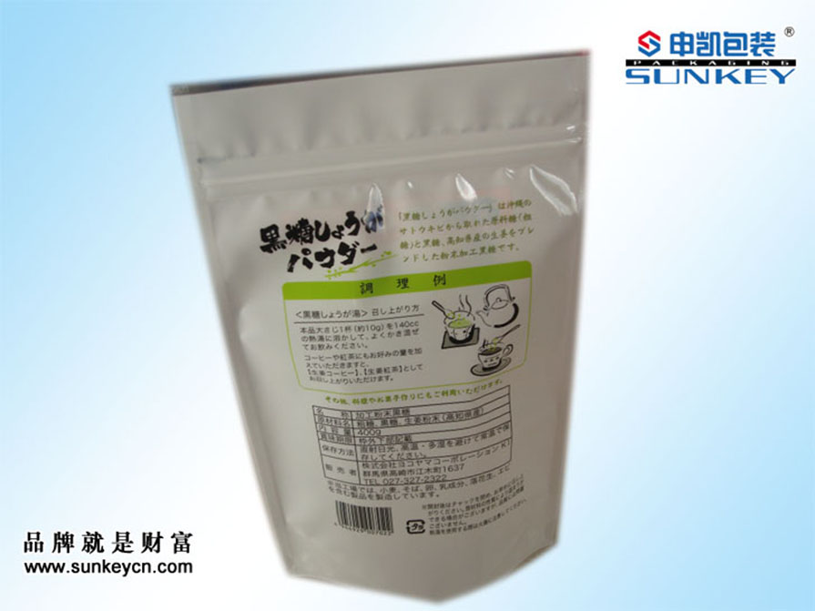 材质:PET/NY/AL/PE(一般包装)PET/NY/AL/CPP(高温蒸煮) 厚度:70~180微米 袋形:自立拉链袋