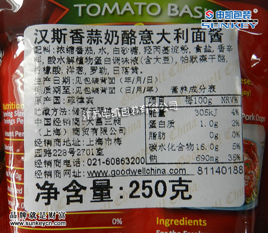 传统口味意大利面酱包装