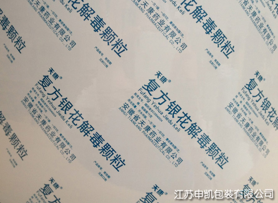 用于粉剂、颗粒剂、片剂、中药饮片、透皮贴剂和医疗器械等包装,它既能保持单层薄膜的优良特性,又能克服各单膜的不足,具有优良的特性,印刷性能比较清晰,能满足不同包装内容物对包装的要求。
